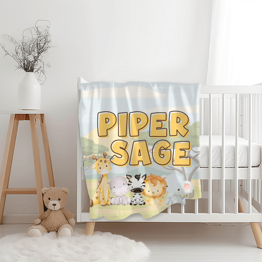 Custom Name Baby Blanket - Safari Theme