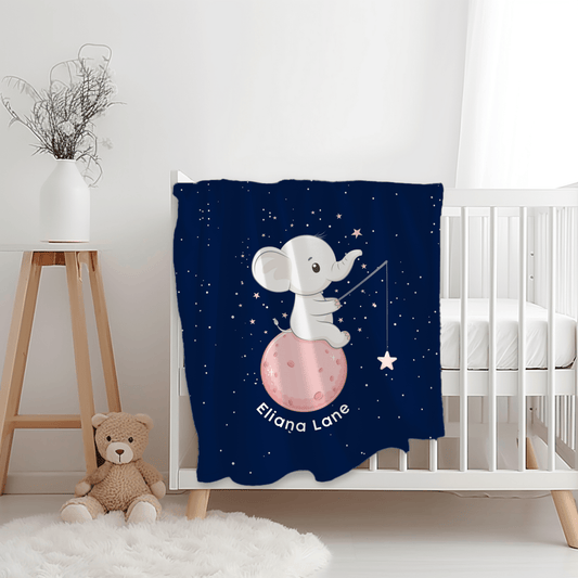Custom Name Blanket - Baby Elephant Moon