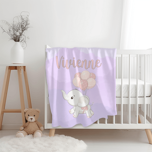 Custom Name Blanket - Baby Elephant Purple