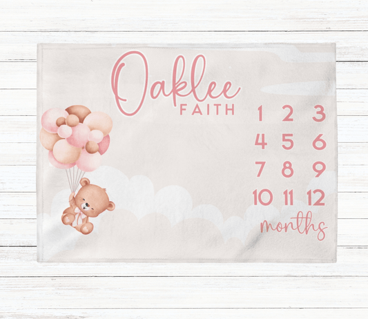 Baby Girl Balloon Milestone Blanket - Custom Name