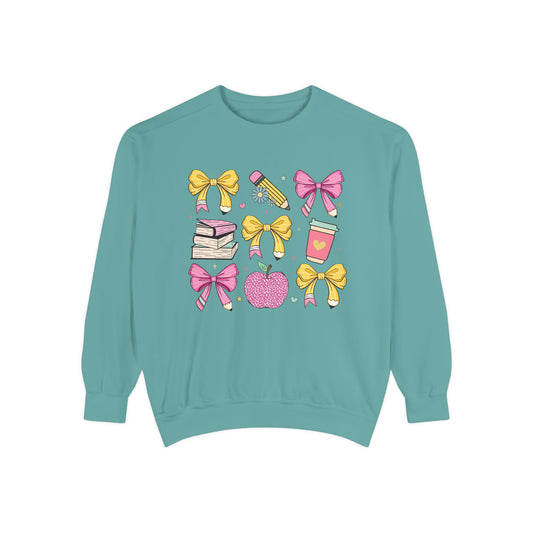 Teacher School Bow Comfort Colors Crewneck