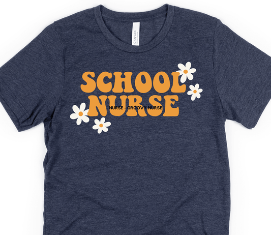 Groovy School Nurse Flower T-shirt