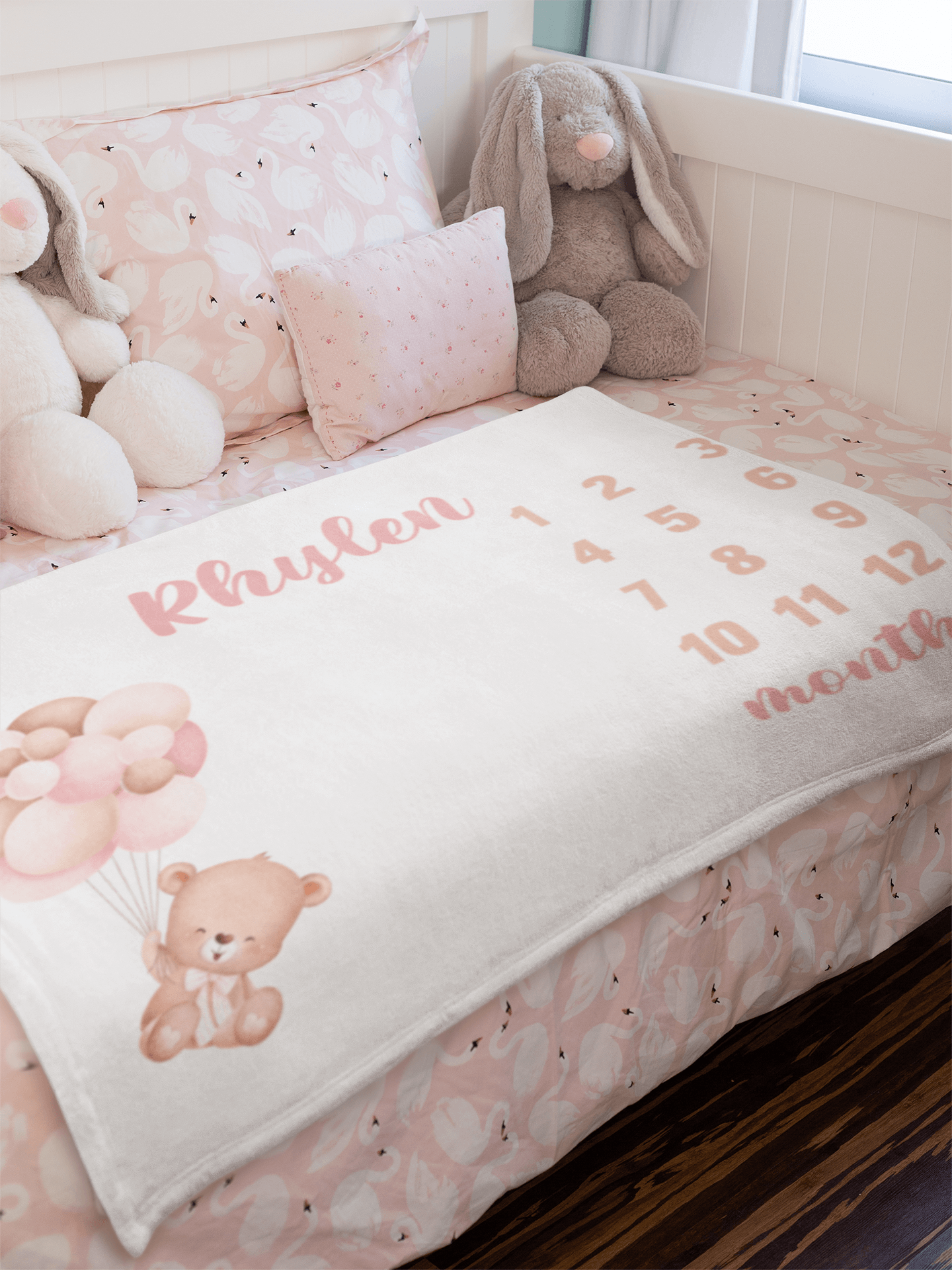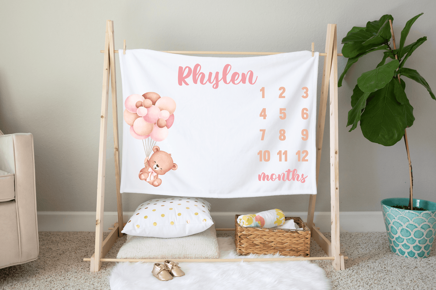 Baby Girl Balloon Milestone Blanket - Custom Name