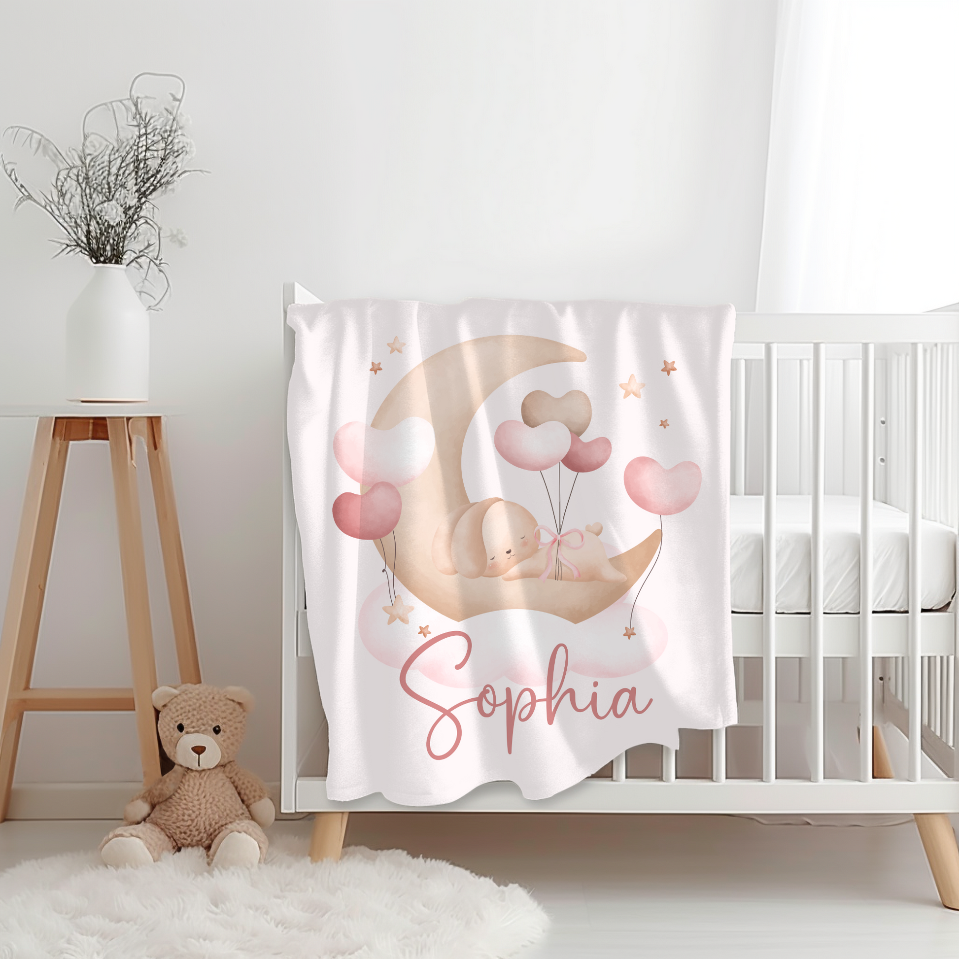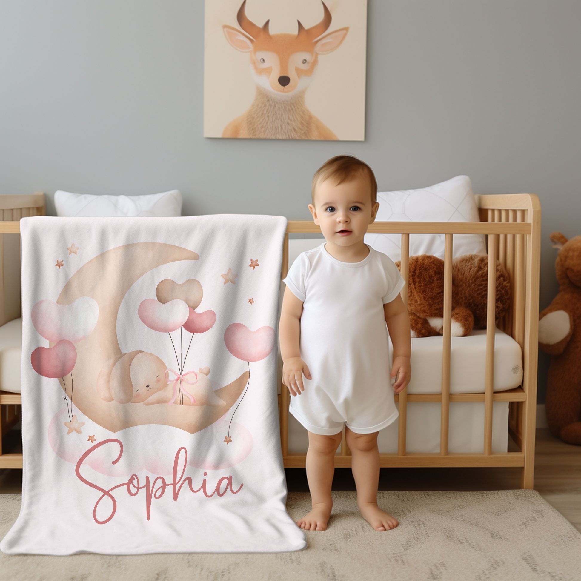 Welcome the newest member of the family with our personalized plush velveteen baby blanket featuring adorable baby elephants and a custom name – the perfect baby shower gift or welcome home present for the little bundle of joy. Crafted from the softest velveteen fabric, this blanket is designed to cocoon your baby in warmth and comfort, making it an essential addition to any nursery. The cute baby elephants add a charming touch to naptime or playtime, creating a cozy environment for your baby to grow, learn, and dream.