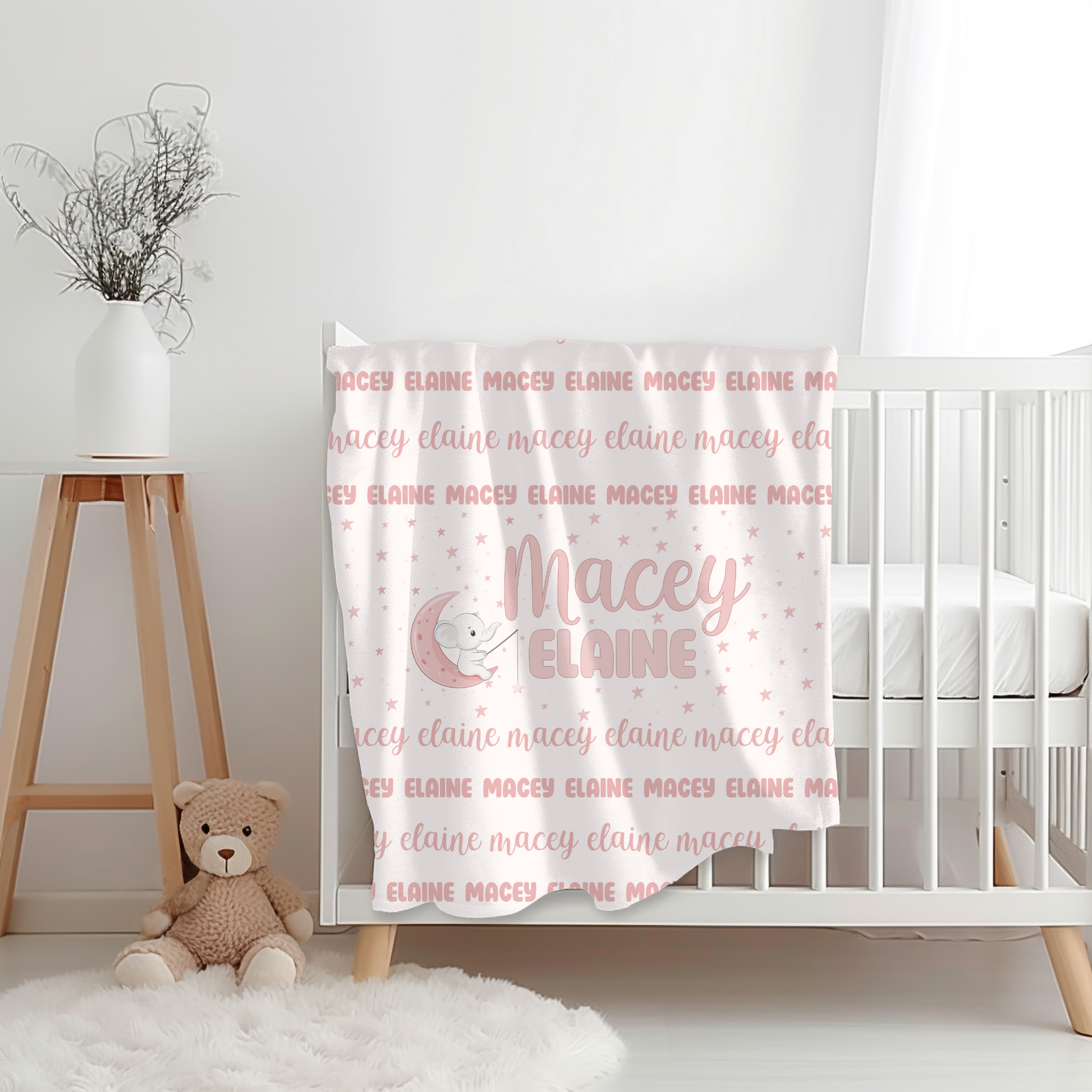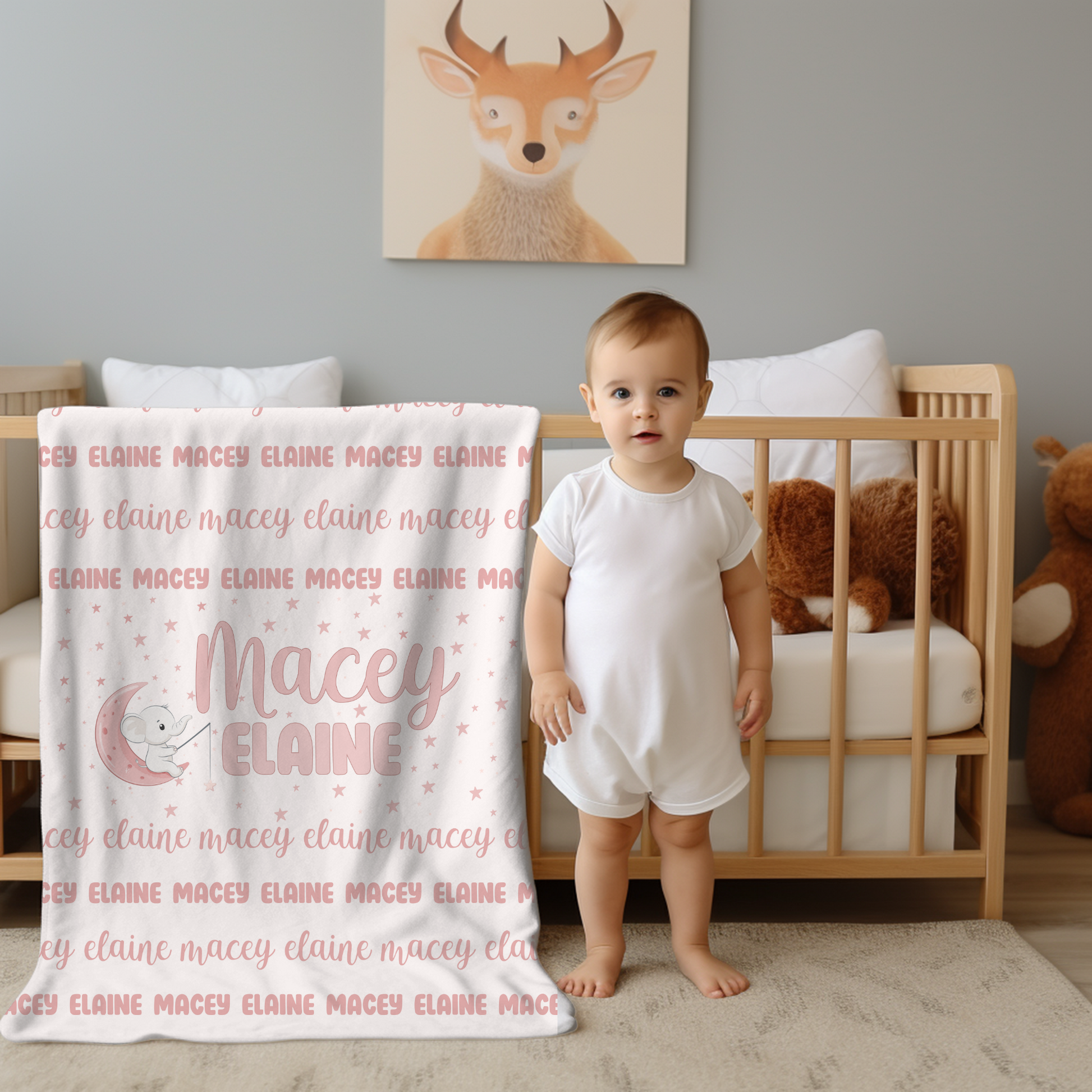 Welcome the newest member of the family with our personalized plush velveteen baby blanket featuring adorable baby elephants and a custom name – the perfect baby shower gift or welcome home present for the little bundle of joy. Crafted from the softest velveteen fabric, this blanket is designed to cocoon your baby in warmth and comfort, making it an essential addition to any nursery. The cute baby elephants add a charming touch to naptime or playtime, creating a cozy environment for your baby to grow, learn, and dream.