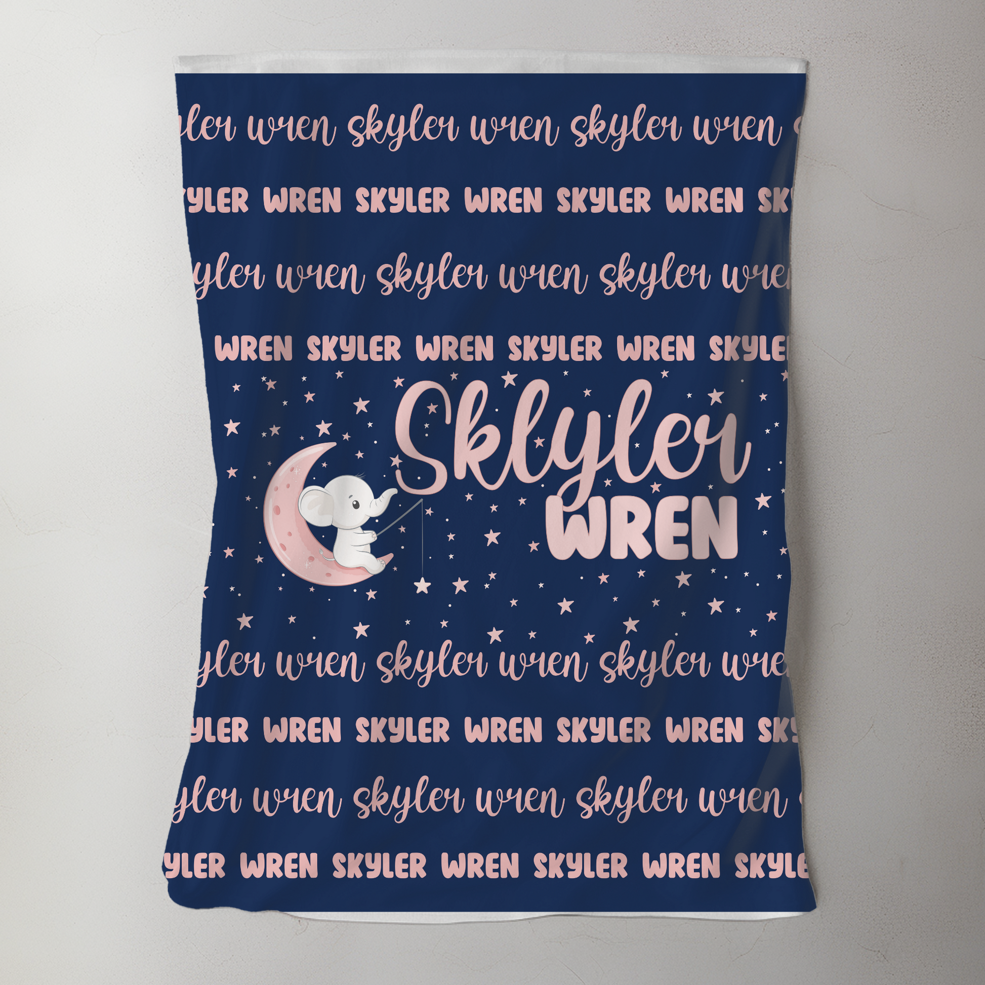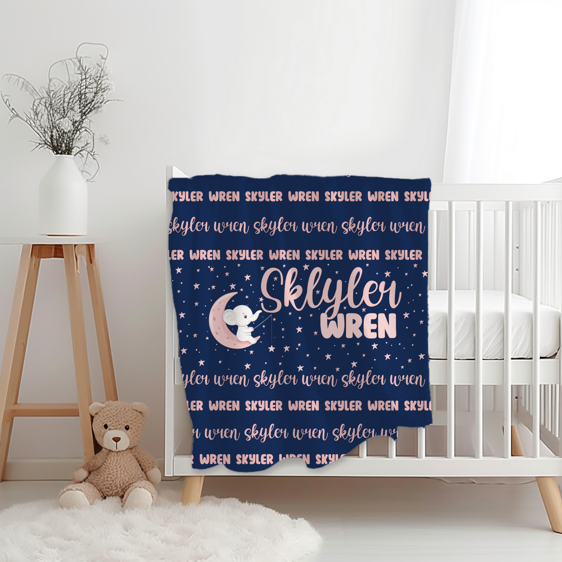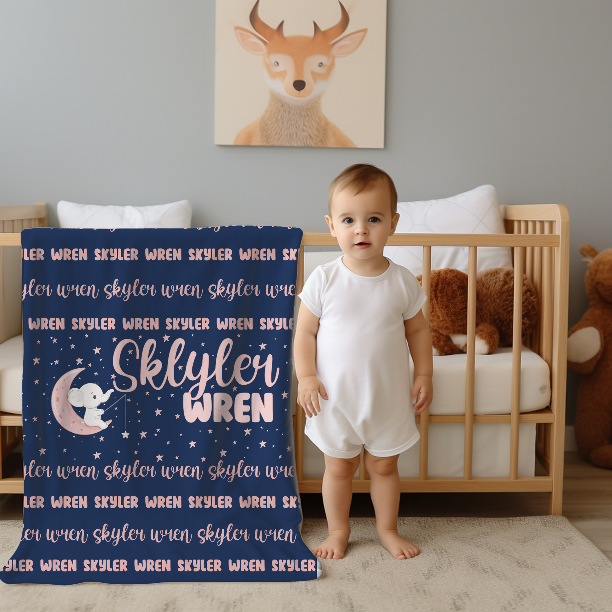Welcome the newest member of the family with our personalized plush velveteen baby blanket featuring adorable baby elephants and a custom name – the perfect baby shower gift or welcome home present for the little bundle of joy. Crafted from the softest velveteen fabric, this blanket is designed to cocoon your baby in warmth and comfort, making it an essential addition to any nursery. The cute baby elephants add a charming touch to naptime or playtime, creating a cozy environment for your baby to grow, learn, and dream.