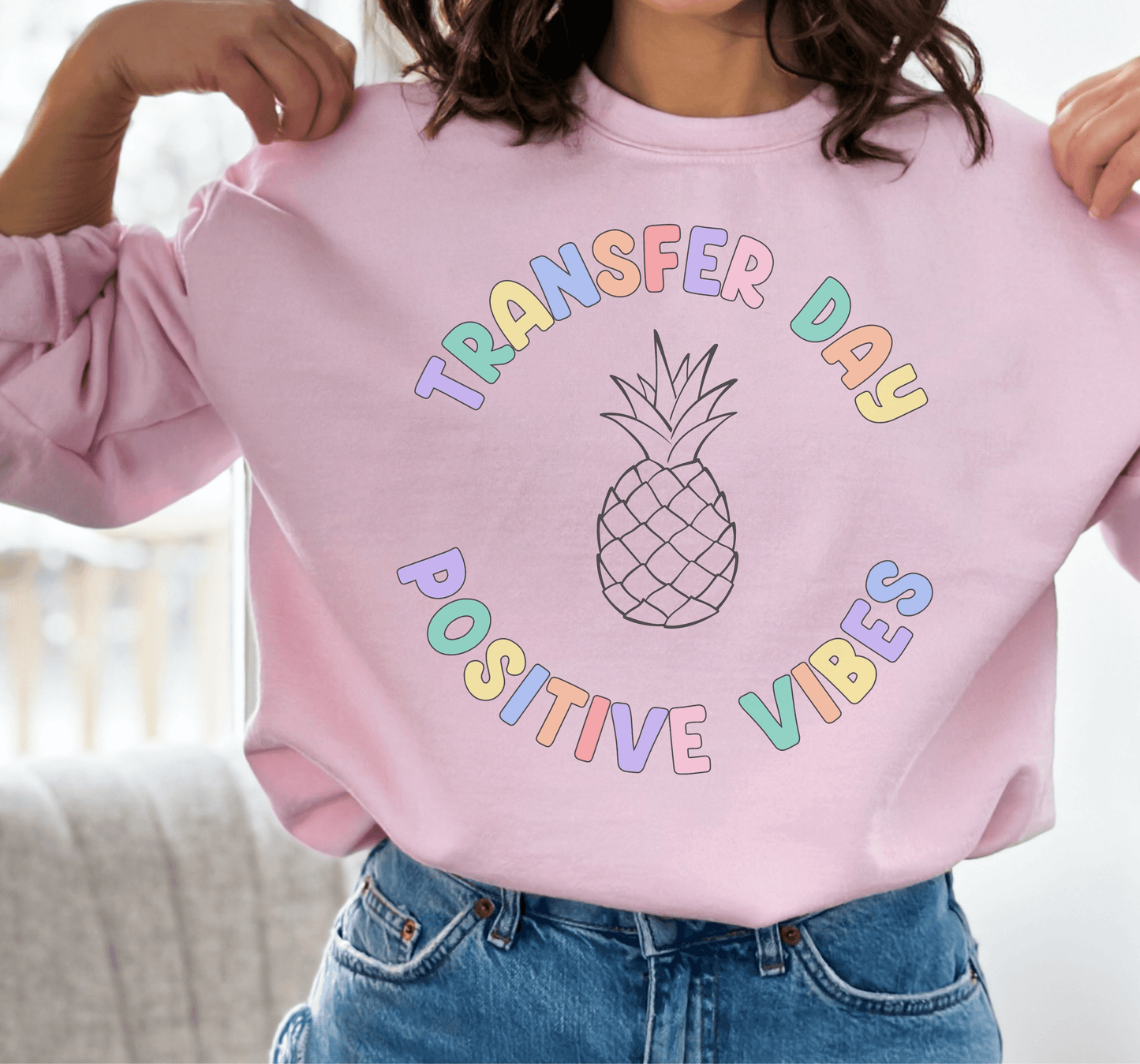 Wrap yourself in warmth and love with our transfer day sweatshirt and t-shirts. Designed for the incredible women who've embarked on the beautiful journey of In Vitro Fertilization, these garments are more than just apparel; they're a testament to your strength and resilience. Each stitch tells a story of hope, perseverance, and unwavering love. Whether you're celebrating a successful IVF journey or wearing it as a badge of honor through the process, these pieces honor the incredible mothers who've faced challenges with courage and grace. Let our IVF Mom collection be a cozy reminder of the miracle you've created and the love that surrounds you on this extraordinary path to parenthood. You're not alone; you're part of a community of strong, inspiring women who wear their hearts on their sleeves.